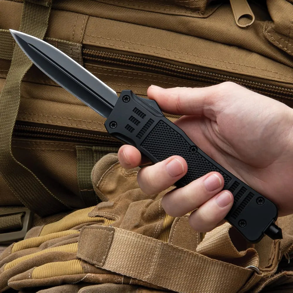 A1: Faithful portable replica of the iconic U.S. design with knuckle guard handle and liner-lock security.