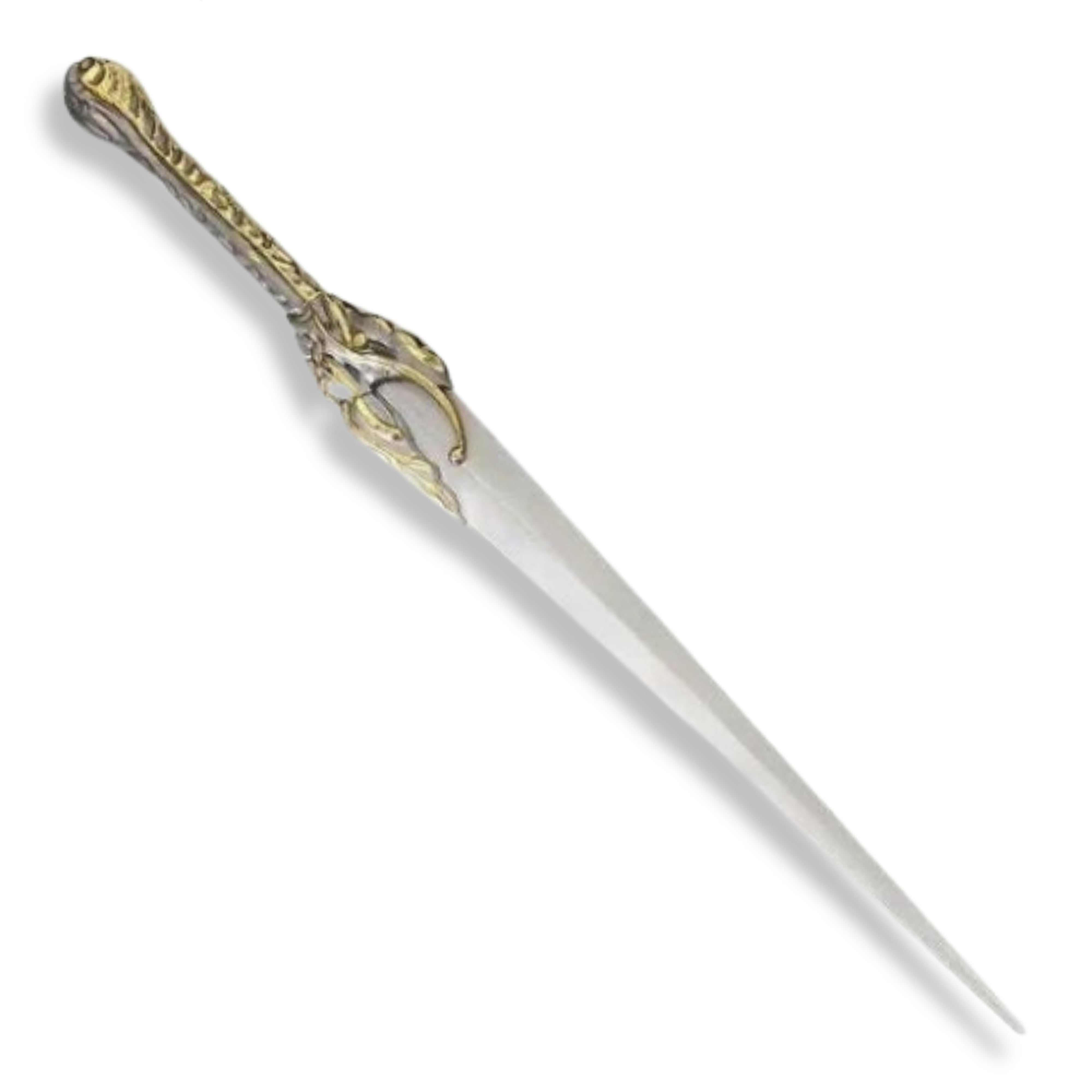 Carry the quiet fire of the Noldor with Galadriel’s Dagger Replica, a refined tribute to the Lady of Light’s hidden blade in The Rings of Power. Forged with Elven subtlety, this compact weapon blends lethal grace and timeless beauty—perfect for display, cosplay, or adding a touch of Lothlórien to your collection.